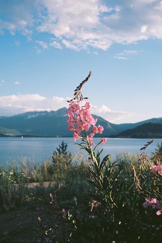 Download 320x480 flowers, grass, landscape, mountains, lake wallpaper, background samsung galaxy ace gt-s5830, sony xperia e, miro, htc wildfire s, c, lg optimus