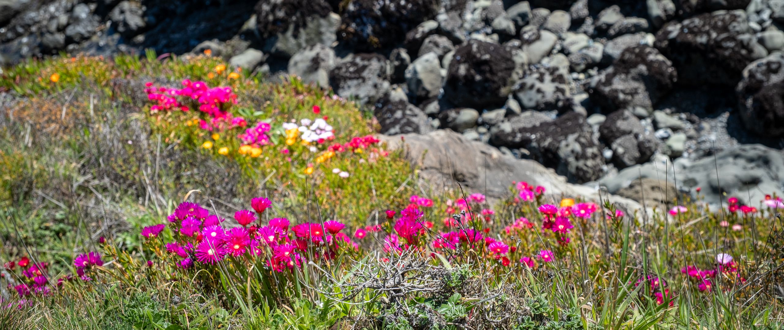 Download 2560x1080 flowers, grass, stones, nature wallpaper, background dual wide 1080p