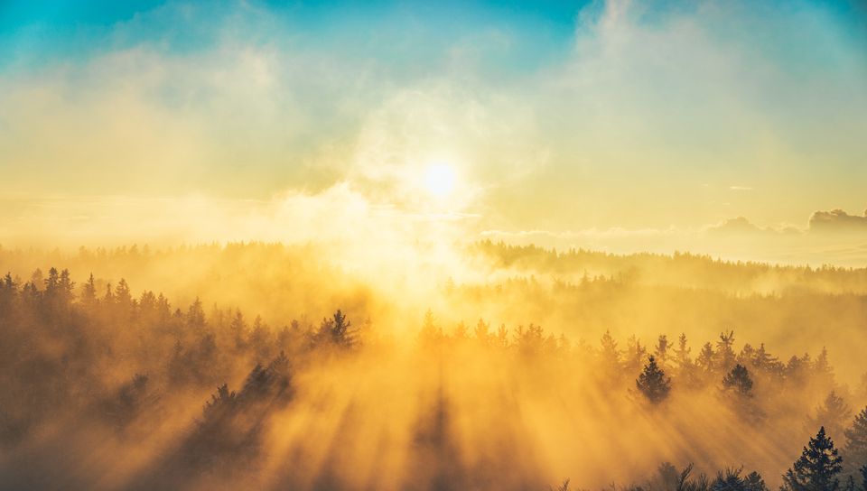 Download 960x544 fog, trees, light, sun, nature wallpaper, background playstation ps vita