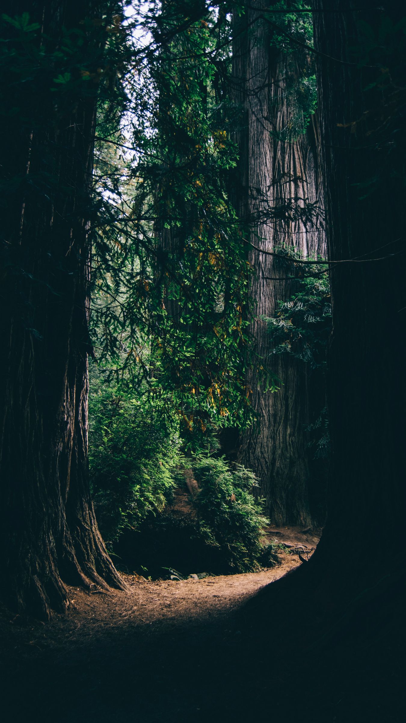 Download 1350x2400 forest, trees, shadows, passage, dark wallpaper, background iphone 8+/7+/6s+/6+ for parallax