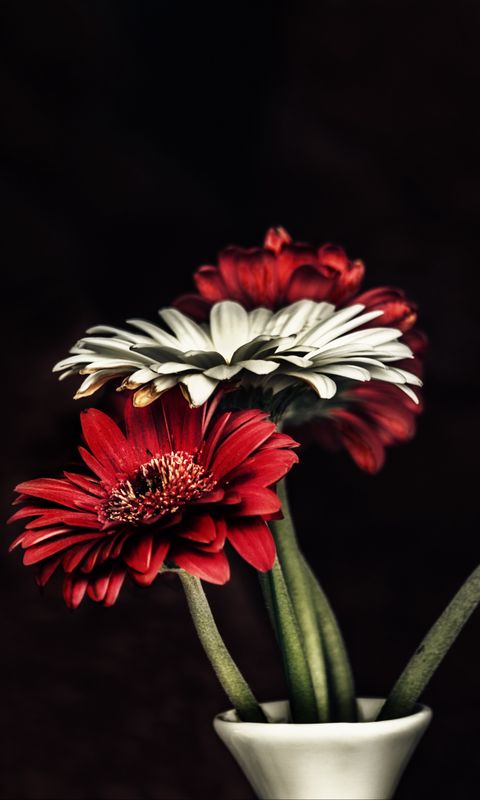 Download 480x800 gerbera, petals, flowers, vase wallpaper, background nokia x, x2, xl, 520, 620, 820, samsung galaxy star, ace, asus zenfone 4