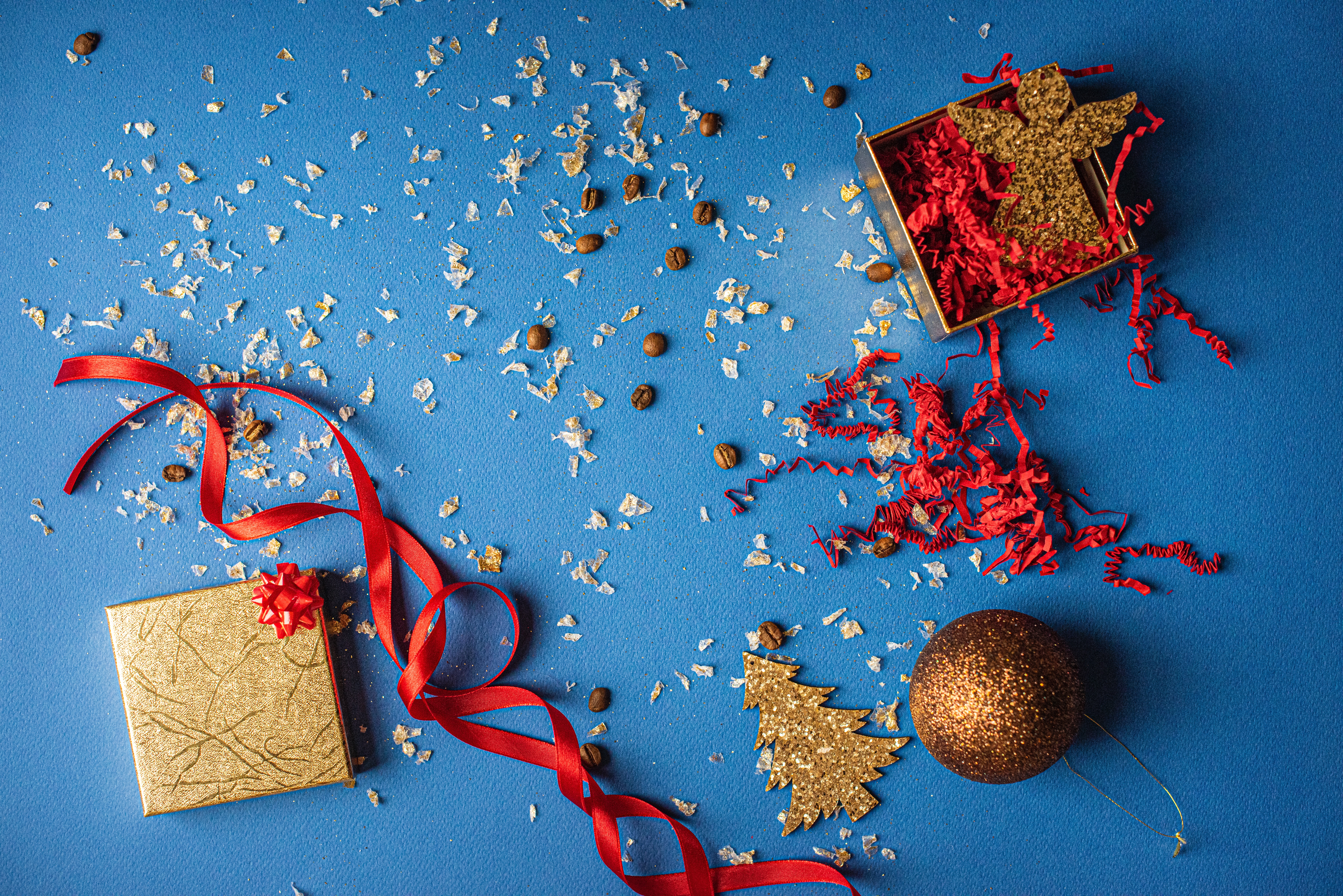 Download 7360x4912 gift, box, decoration, coffee beans wallpaper, background