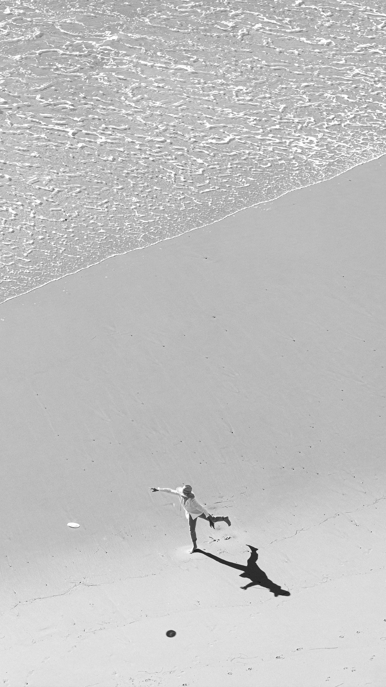 Download 1350x2400 girl, beach, sea, bw wallpaper, background iphone 8+/7+/6s+/6+ for parallax