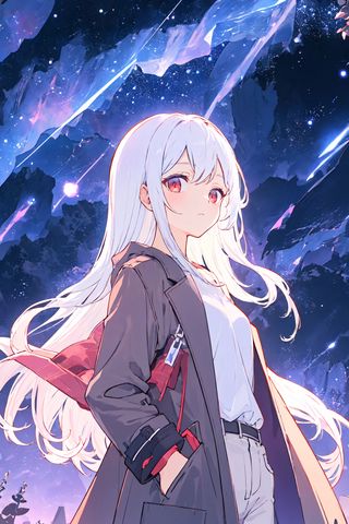 Download 320x480 girl, blonde, cloak, anime wallpaper, background samsung galaxy ace gt-s5830, sony xperia e, miro, htc wildfire s, c, lg optimus