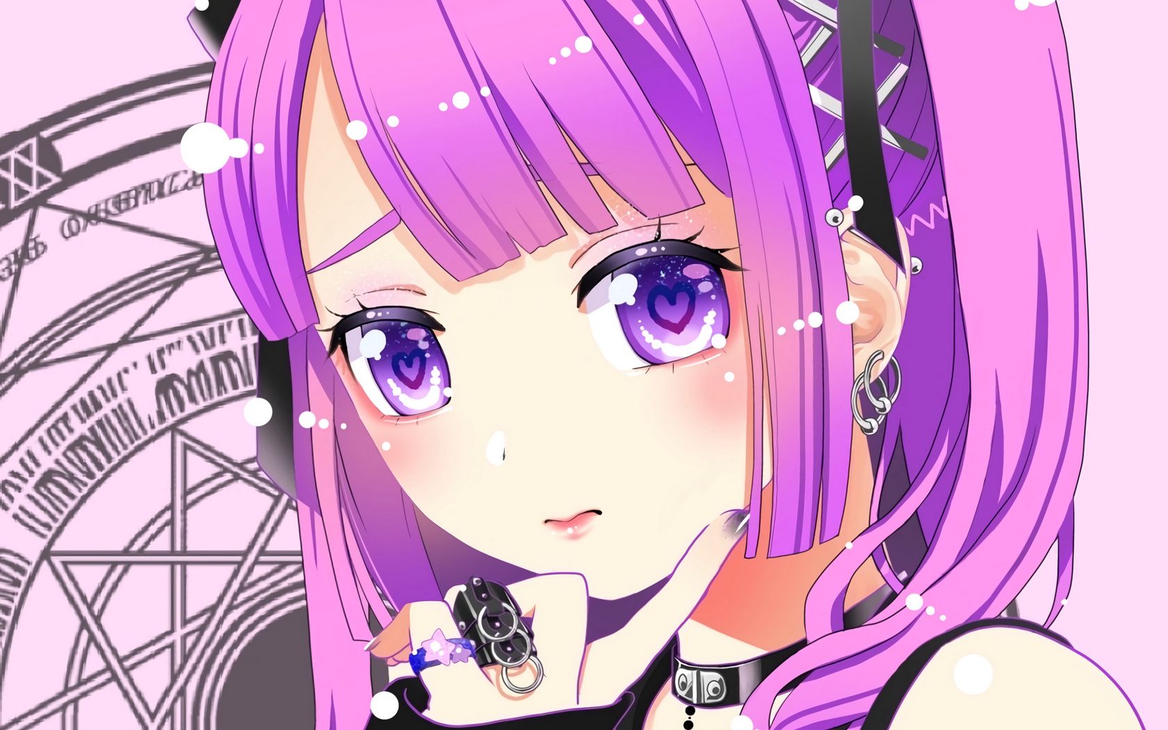 Download 1680x1050 girl, choker, anime, art, purple wallpaper, background widescreen 16:10