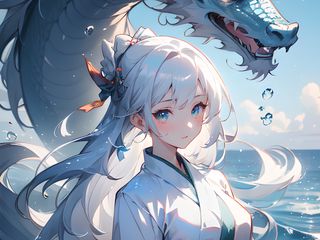 Download 320x240 girl, dragon, sea, blue, art, anime wallpaper, background nokia e72, e71, asha, alcatel onetouch