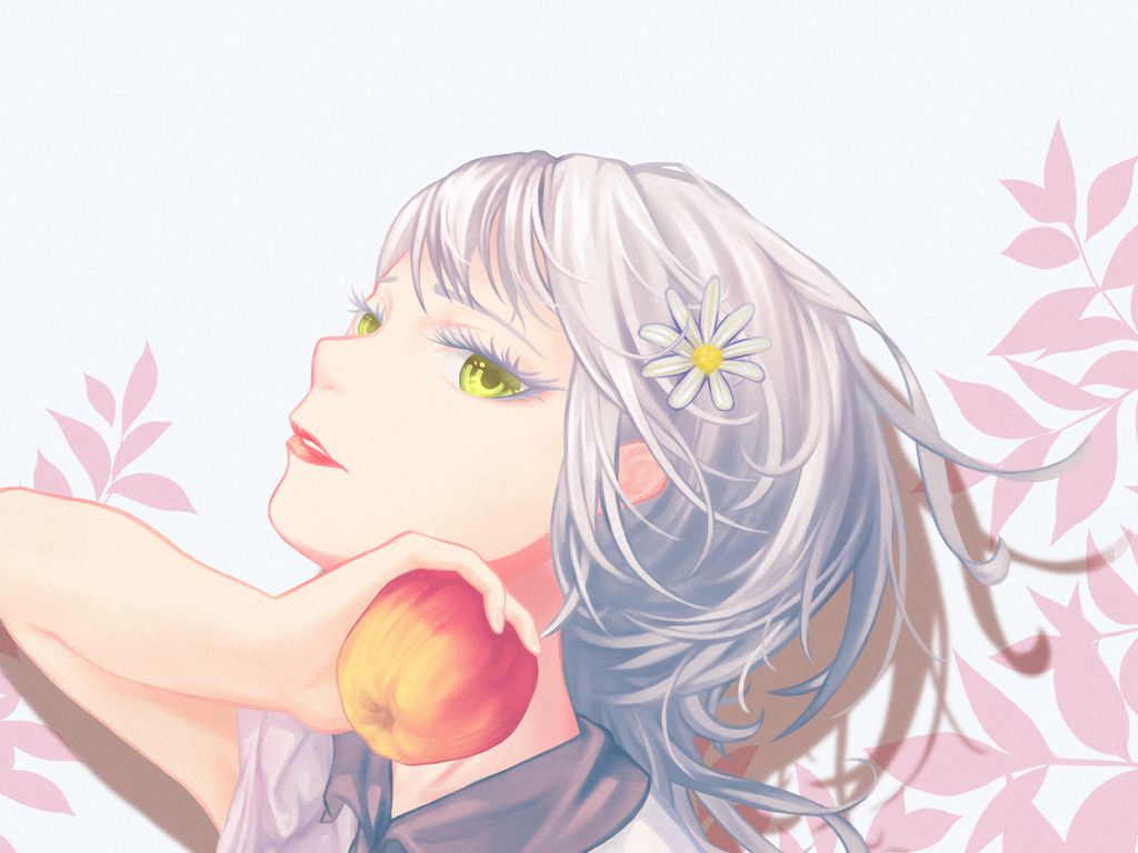 Download 1024x768 girl, glance, apple, anime, art, light wallpaper, background standard 4:3