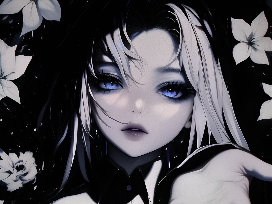 Download 1152x864 girl, hand, eyes, bw, anime wallpaper, background standard 4:3