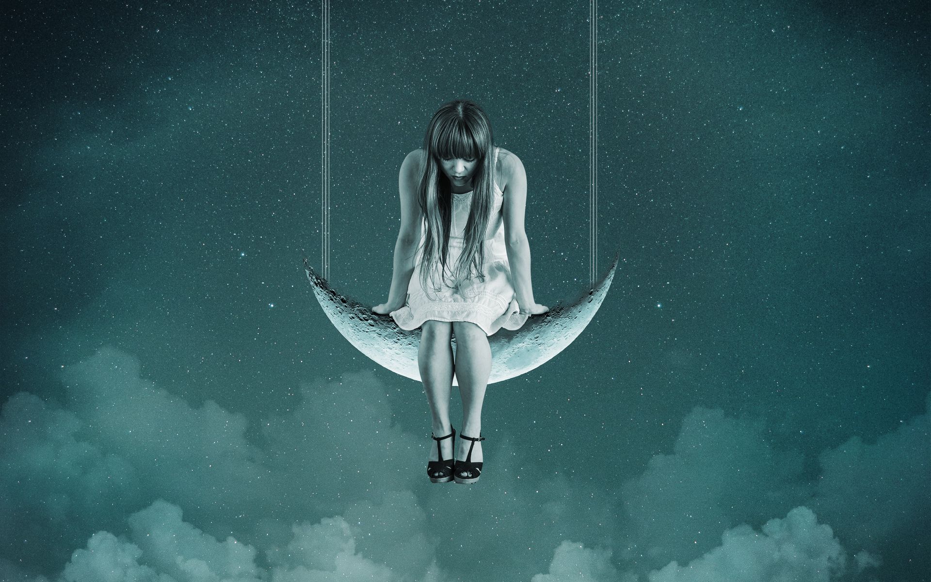 Download 1920x1200 girl, moon, sky, swing, photoshop wallpaper, background widescreen 16:10