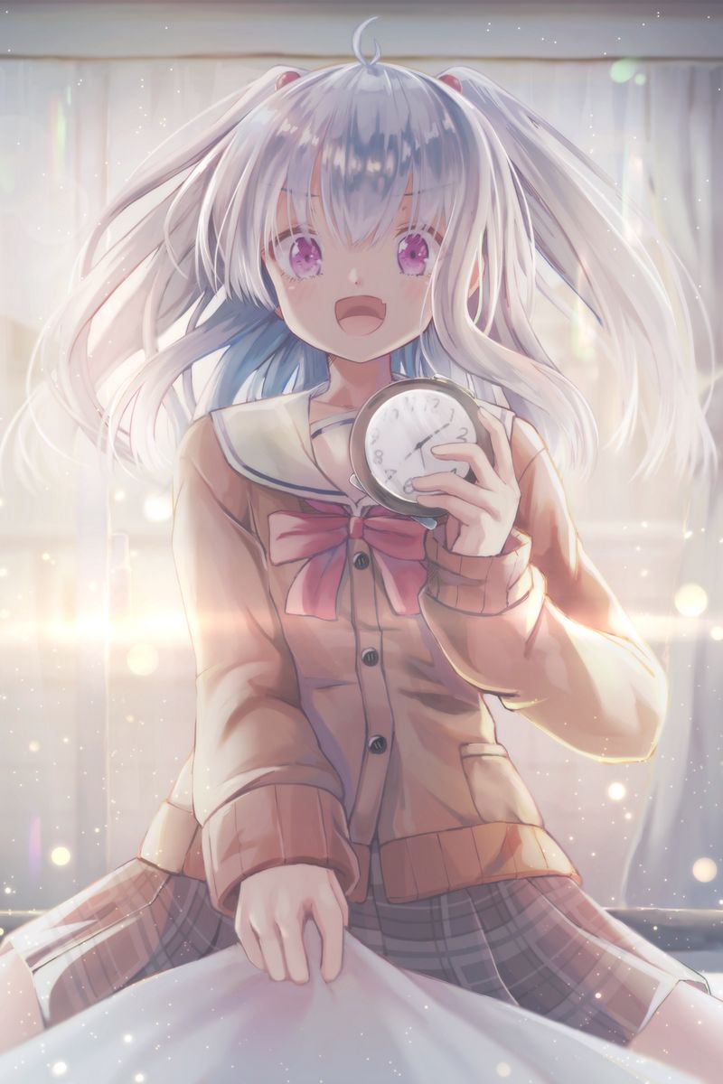 Download 800x1200 girl, pajamas, alarm clock, anime wallpaper, background iphone 4s/4 for parallax