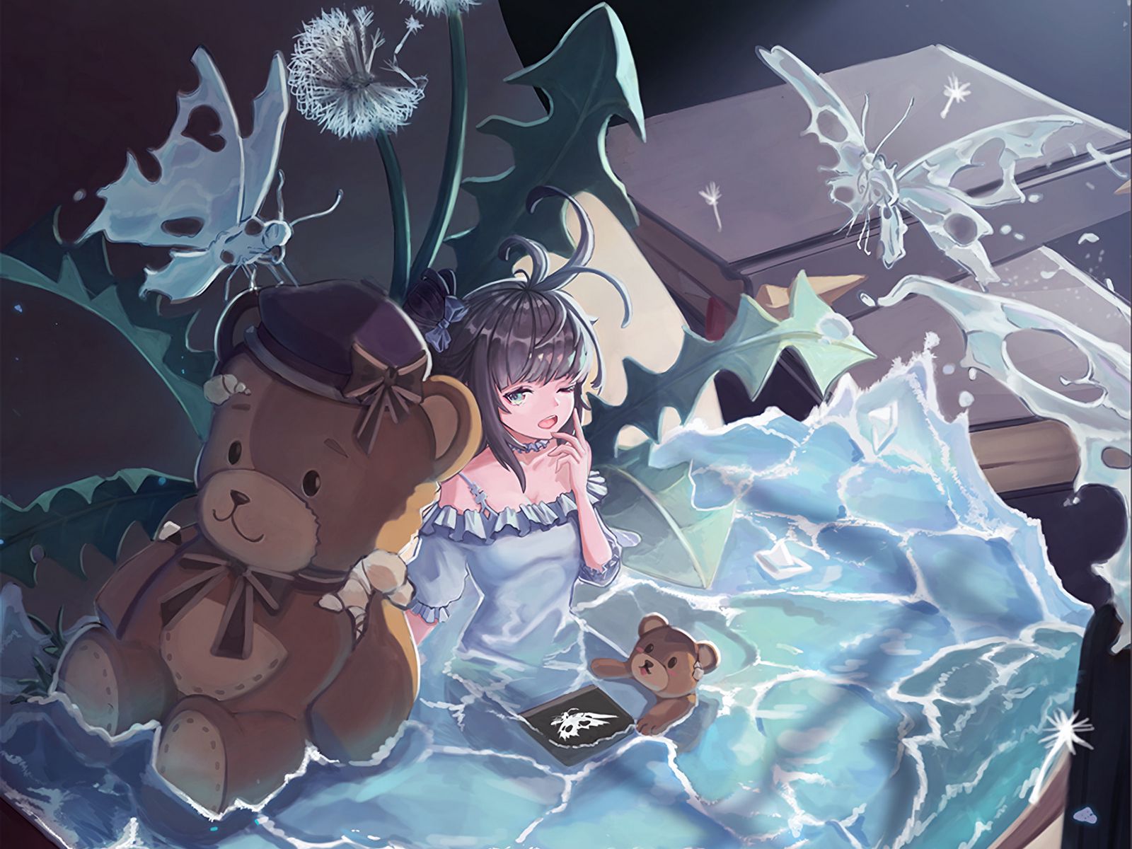 Download 1600x1200 girl, pool, book, fantasy, anime, art wallpaper, background standard 4:3