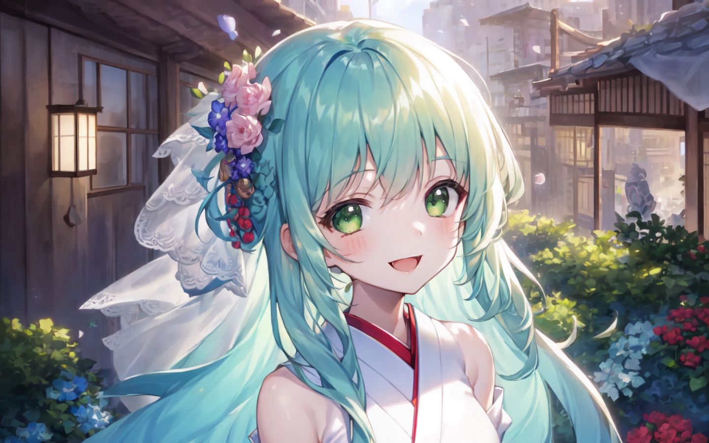 Download 1440x900 girl, smile, bride, anime, art wallpaper, background widescreen 16:10