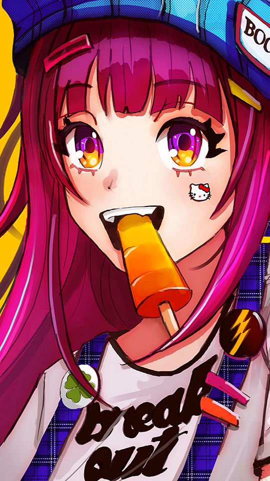 Download 540x960 girl, smile, sticker, ice cream, anime wallpaper, background samsung galaxy s4 mini, microsoft lumia 535, philips xenium, lg l90, htc sensation