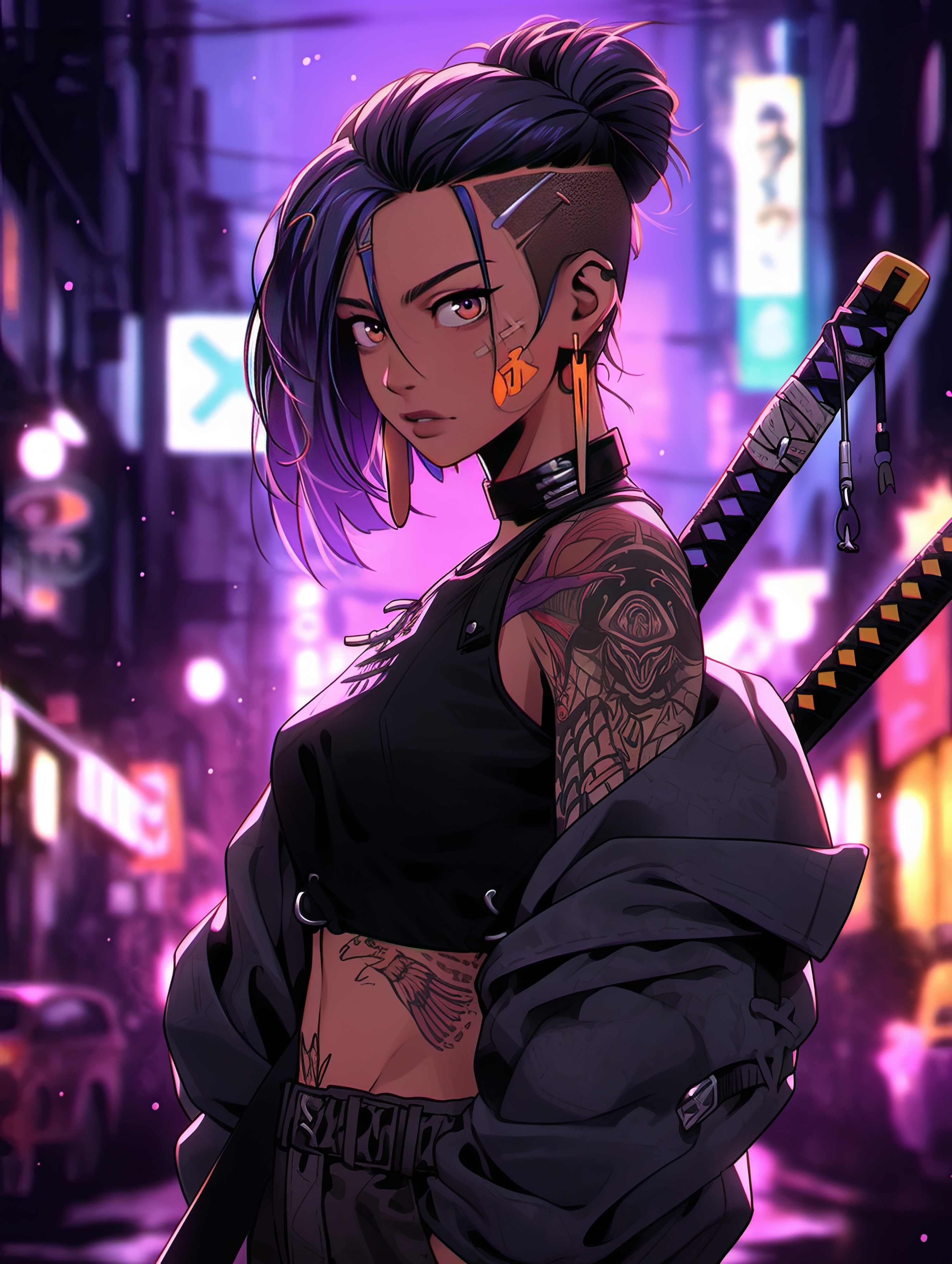 Download 3007x3992 girl, tattoo, katanas, street, art wallpaper, background