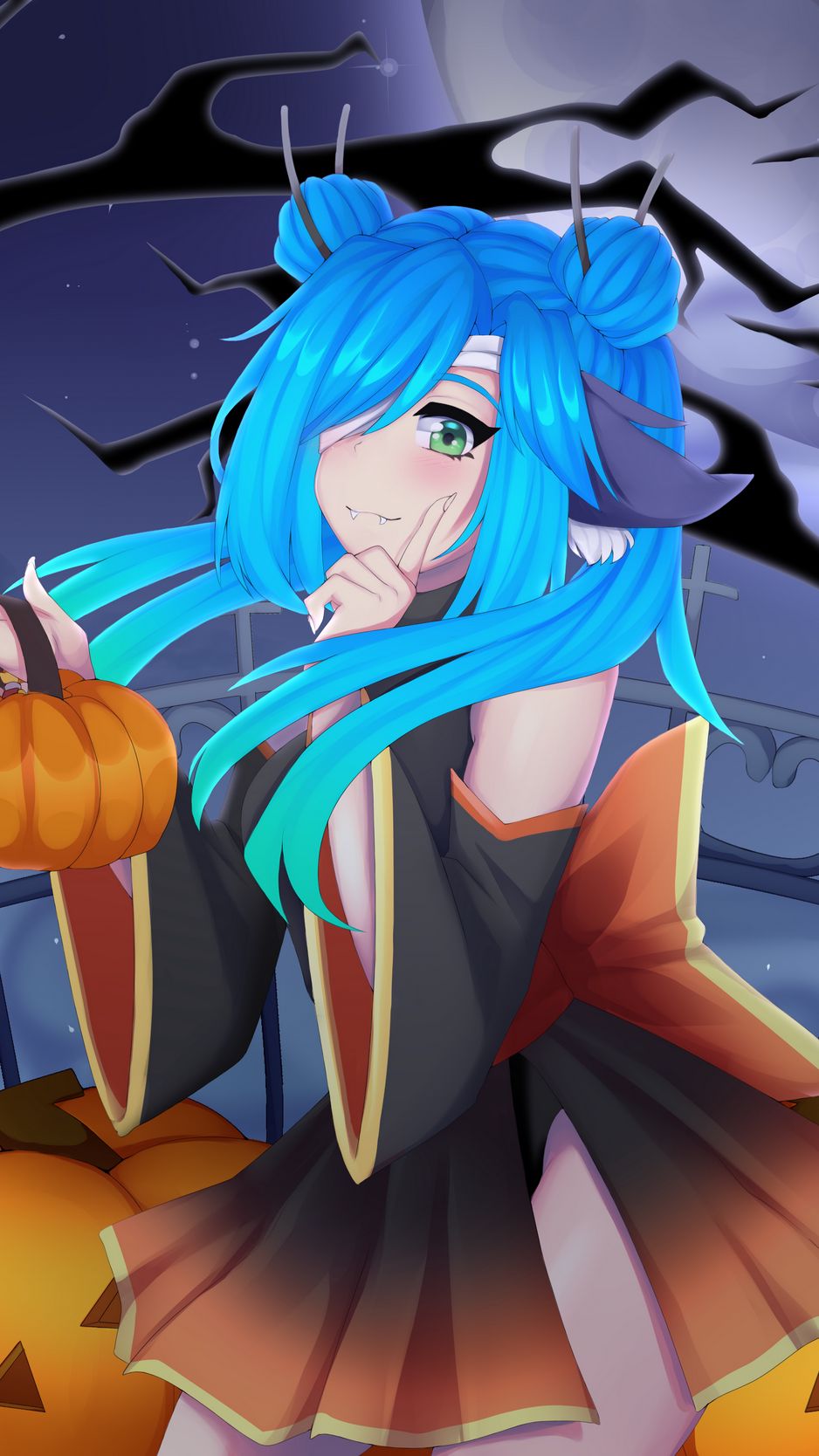 Download 938x1668 girl, vampire, pumpkin, halloween, anime, art wallpaper, background iphone 8/7/6s/6 for parallax
