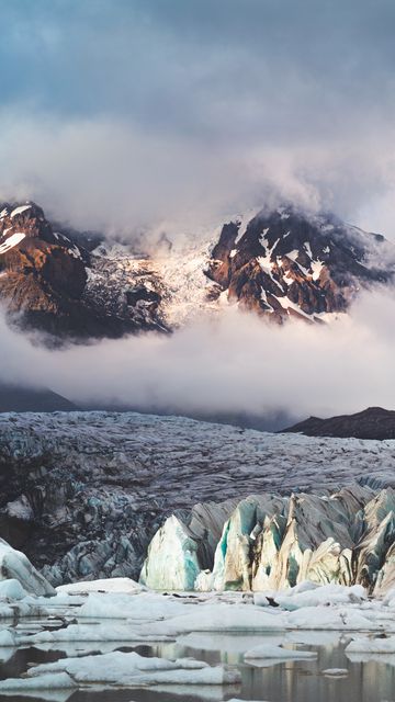 Download 360x640 glacier, mountains, clouds, ice, landscape, iceland wallpaper, background nokia n8, c5, c6, c7, e7, x6 nokia 5800, 5230, 5228, sony ericsson vivaz
