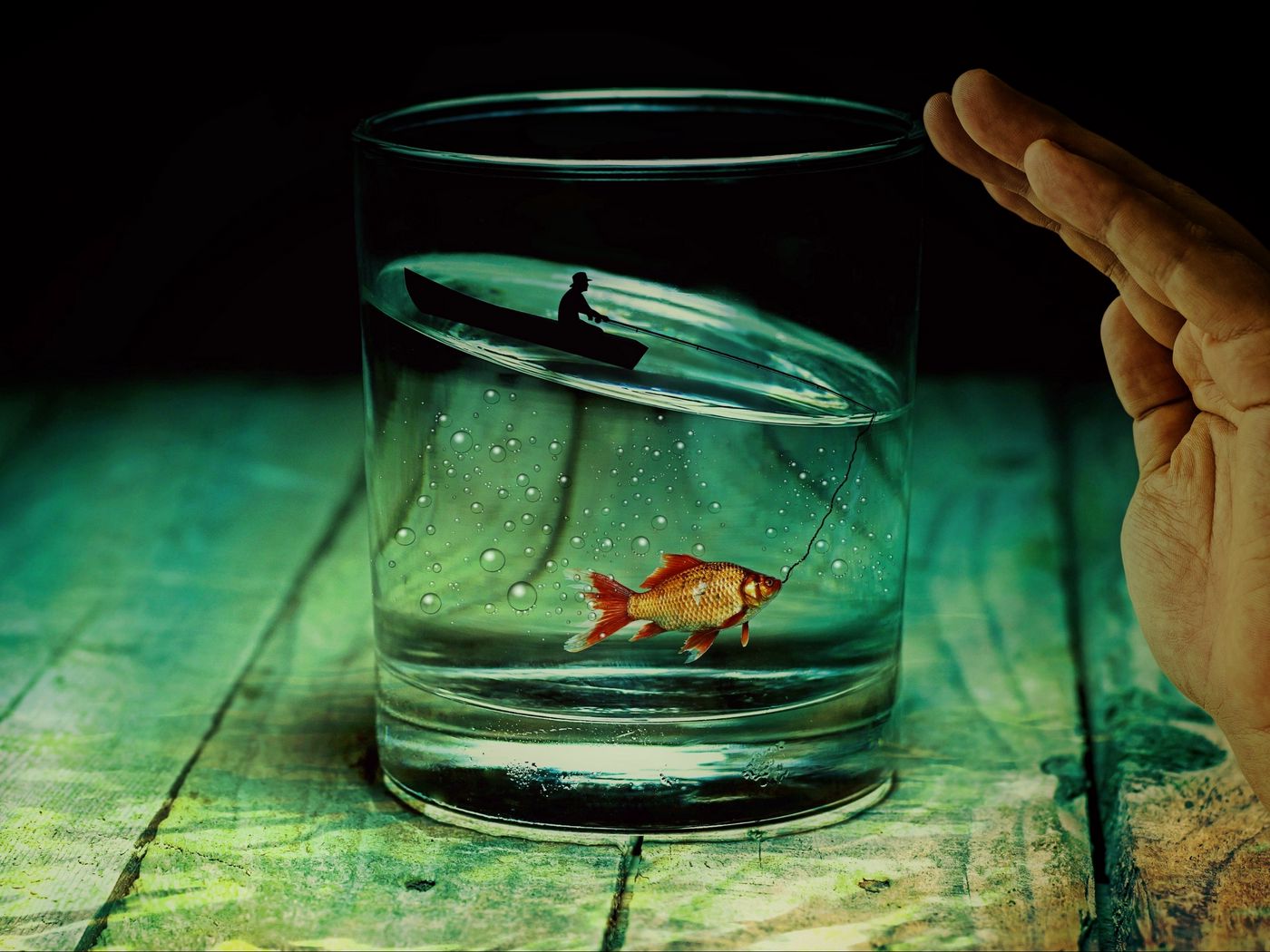 Download 1400x1050 glass, fish, fisherman, photoshop wallpaper, background standard 4:3