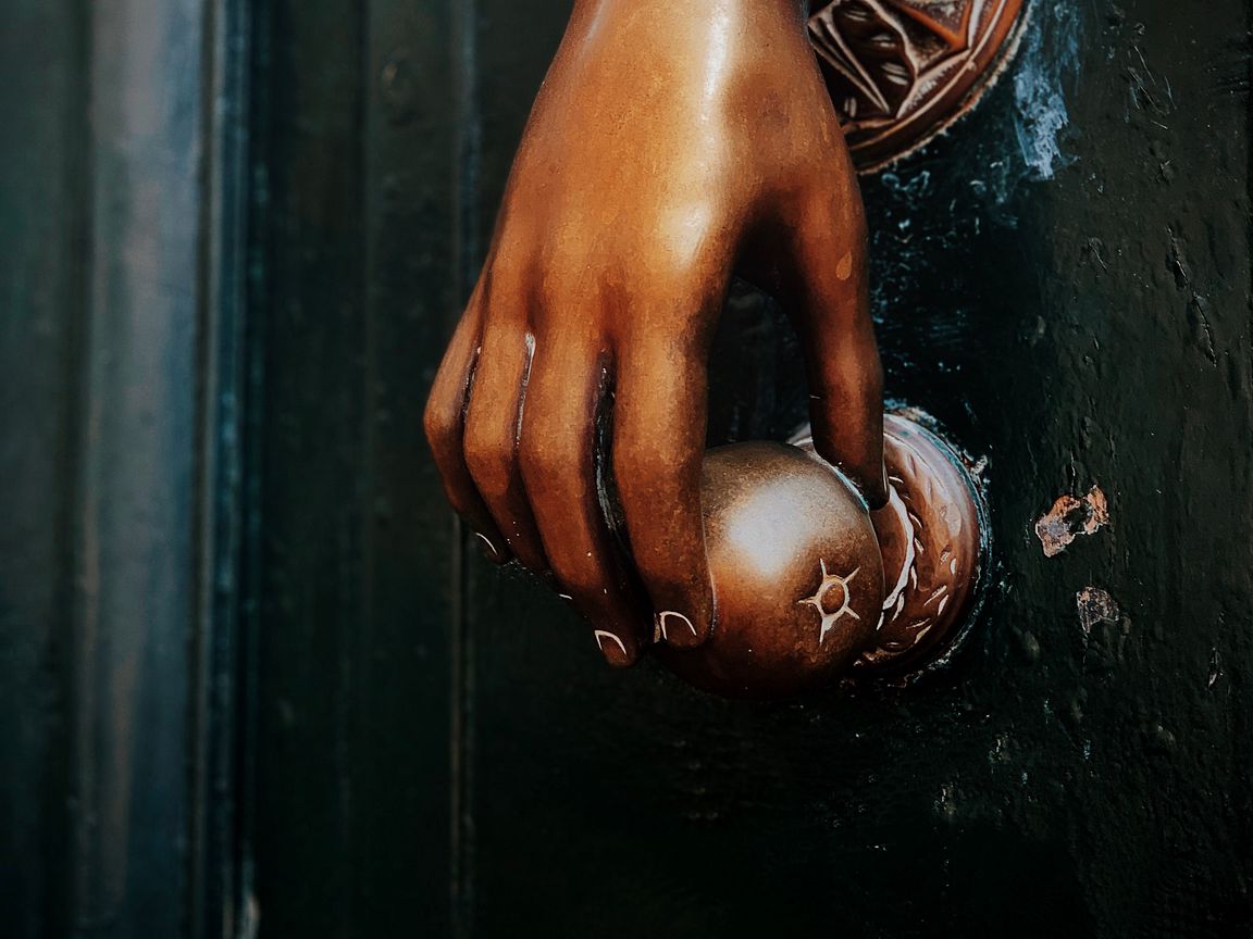 Download 1152x864 hand, door handle, bronze, metal, door wallpaper, background standard 4:3