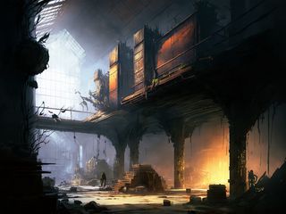 Download 320x240 hangar, columns, dark, art wallpaper, background nokia e72, e71, asha, alcatel onetouch