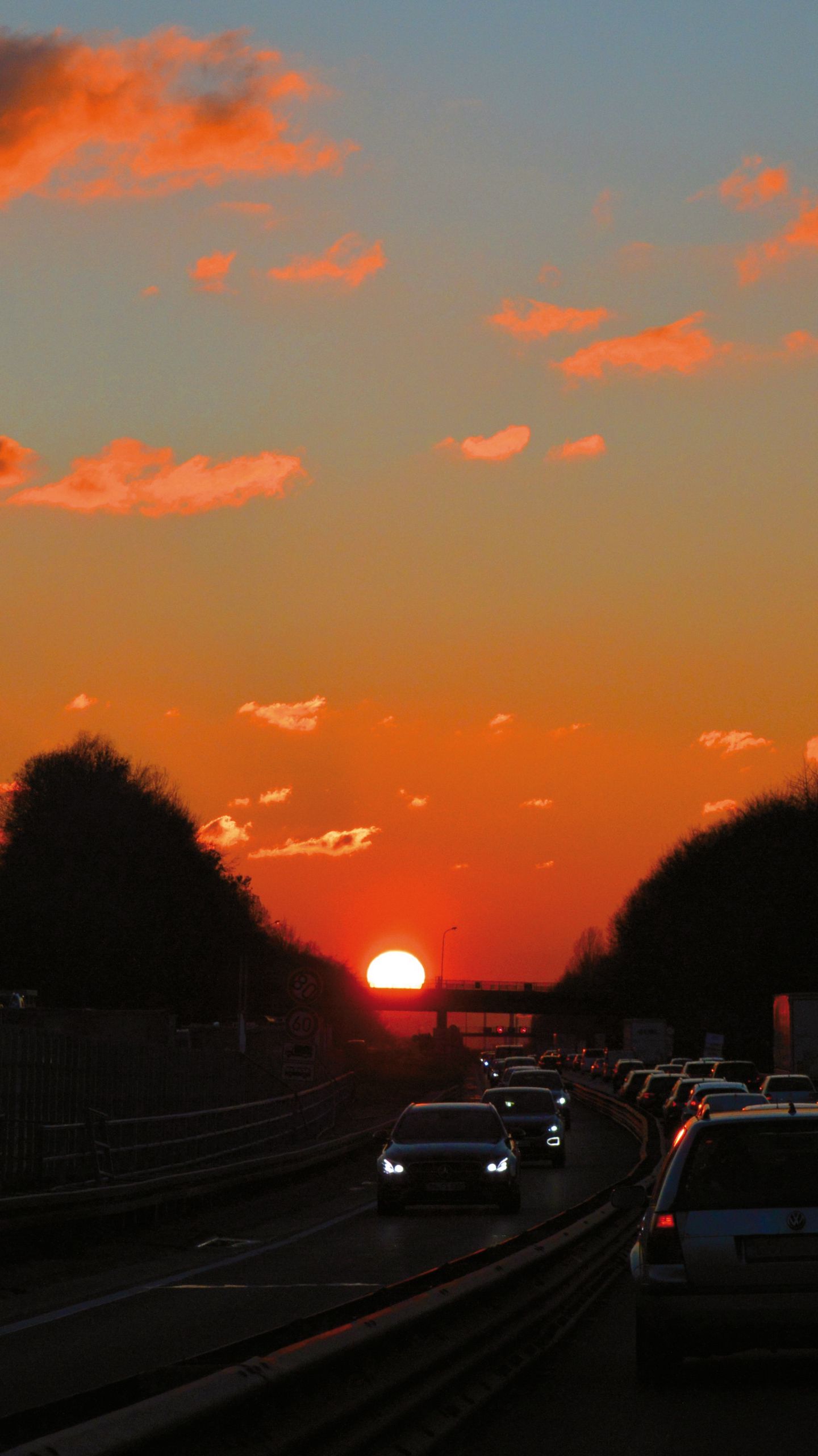 Download 1440x2560 highway, traffic, sunset, road, transportation wallpaper, background qhd samsung galaxy s6, s7, edge, note, lg g4
