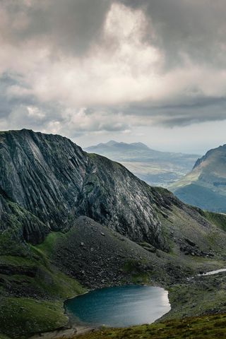 Download 320x480 hills, lake, landscape, mountains, sky wallpaper, background samsung galaxy ace gt-s5830, sony xperia e, miro, htc wildfire s, c, lg optimus