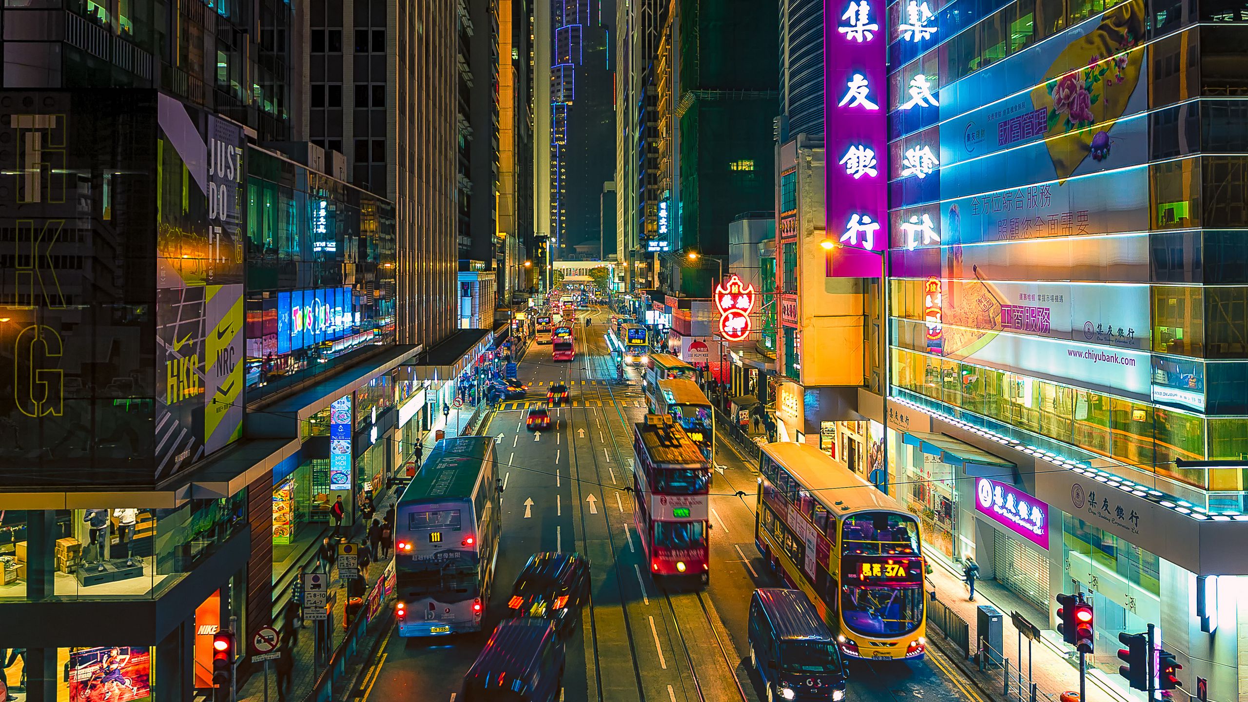 Download 2560x1440 hong kong, street, cars, road, city, lights wallpaper, background widescreen 16:9