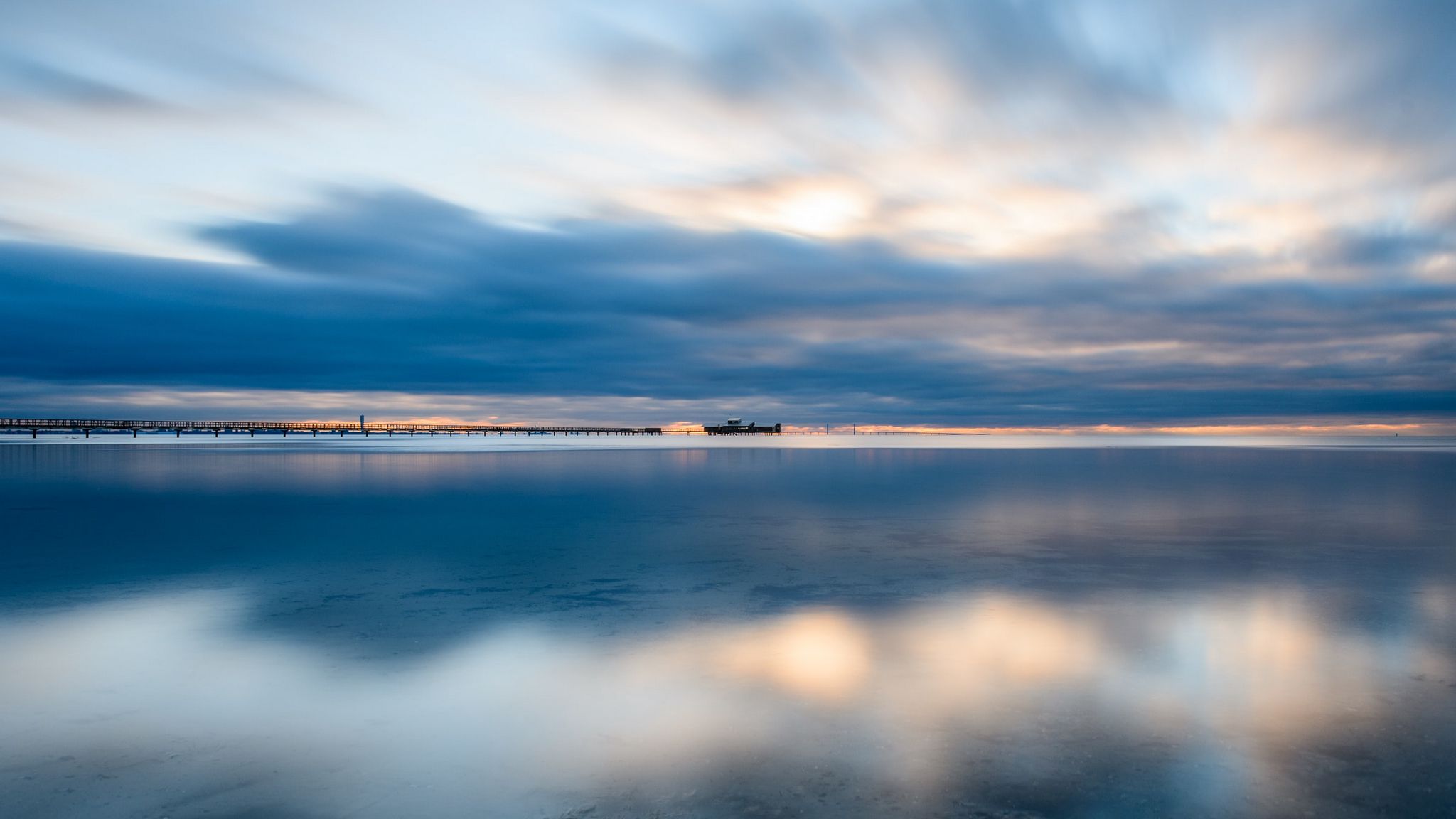 Download 2048x1152 horizon, lake, clouds, sky wallpaper, background ultrawide monitor