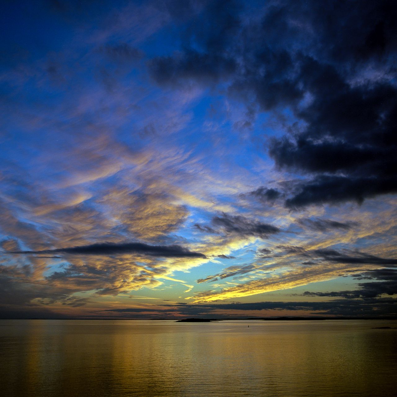 Download 1280x1280 horizon, sea, sunset, sky, clouds wallpaper, background ipad, ipad 2, ipad mini for parallax