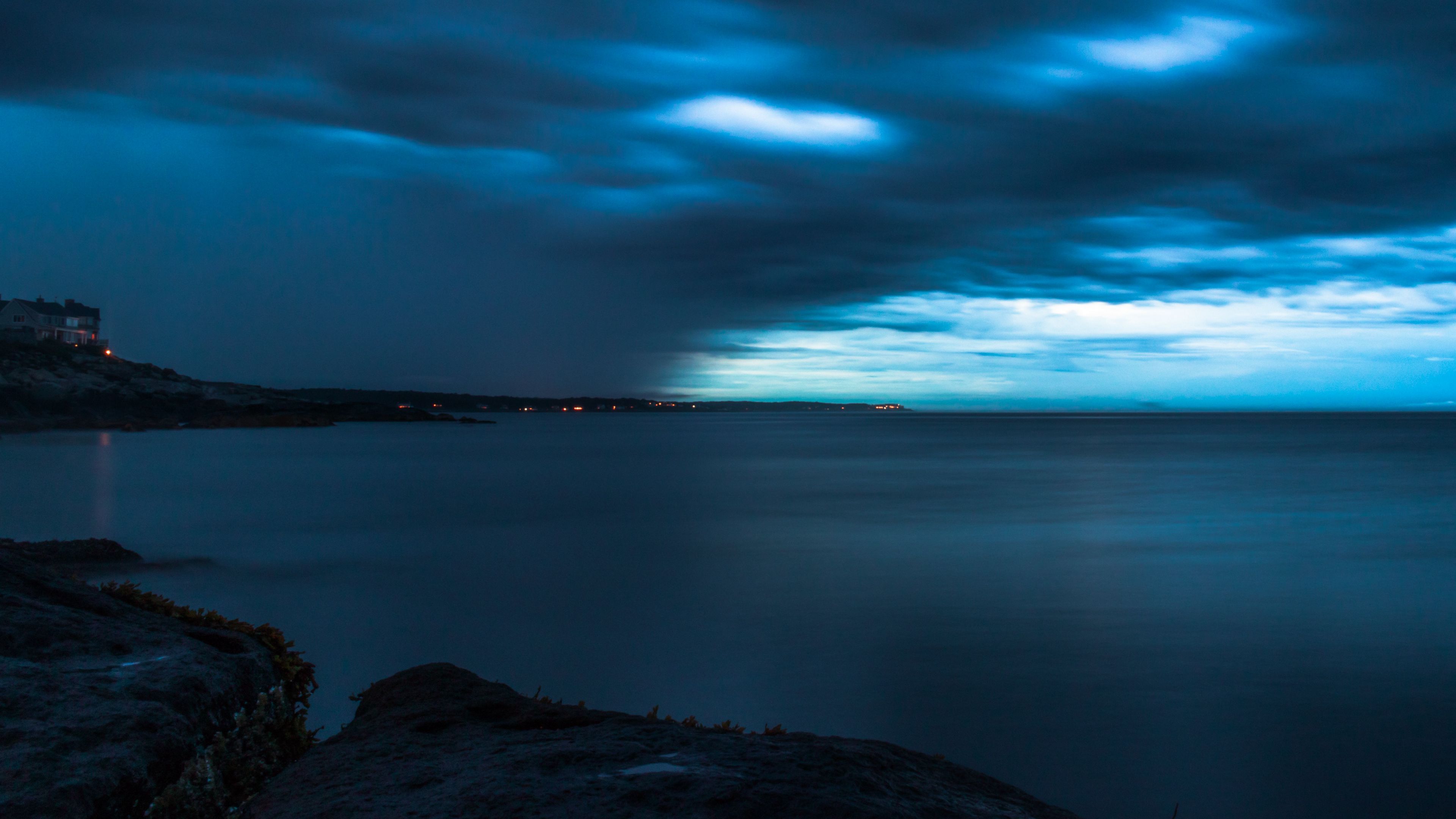Download 3840x2160 horizon, twilight, storm, sky, clouds, shore wallpaper, background 4k uhd 16:9