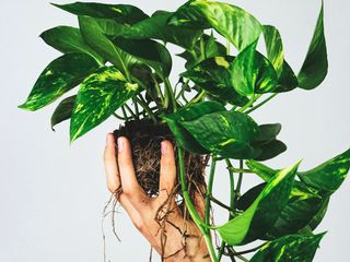 Download 320x240 houseplant, leaves, hand, white wallpaper, background nokia e72, e71, asha, alcatel onetouch