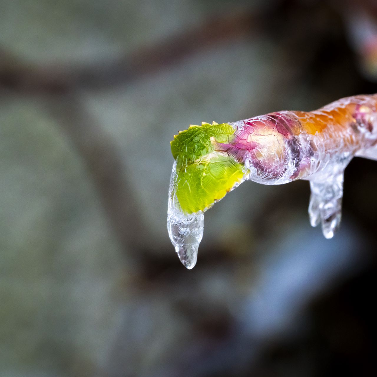 Download 1280x1280 icicle, ice, leaves, blur, macro wallpaper, background ipad, ipad 2, ipad mini for parallax