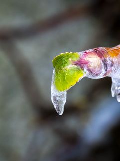 Download 240x320 icicle, ice, leaves, blur, macro wallpaper, background old mobile, cell phone, smartphone