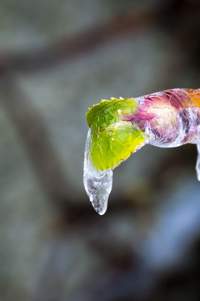 Download 800x1200 icicle, ice, leaves, blur, macro wallpaper, background iphone 4s/4 for parallax