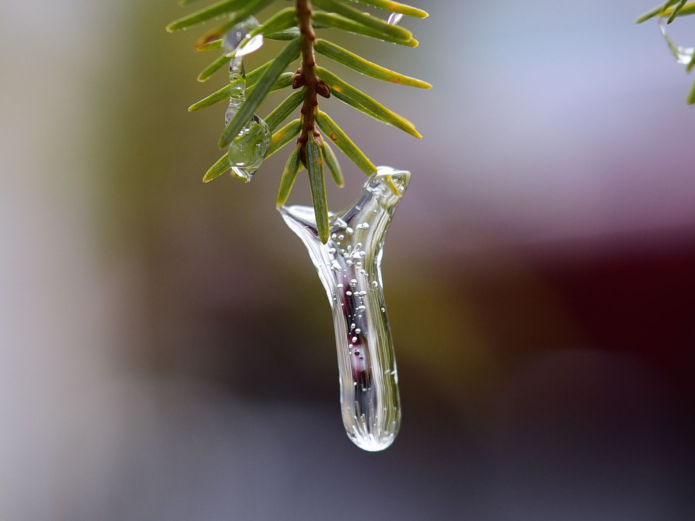 Download 1400x1050 icicle, ice, pine needles, branch, macro wallpaper, background standard 4:3