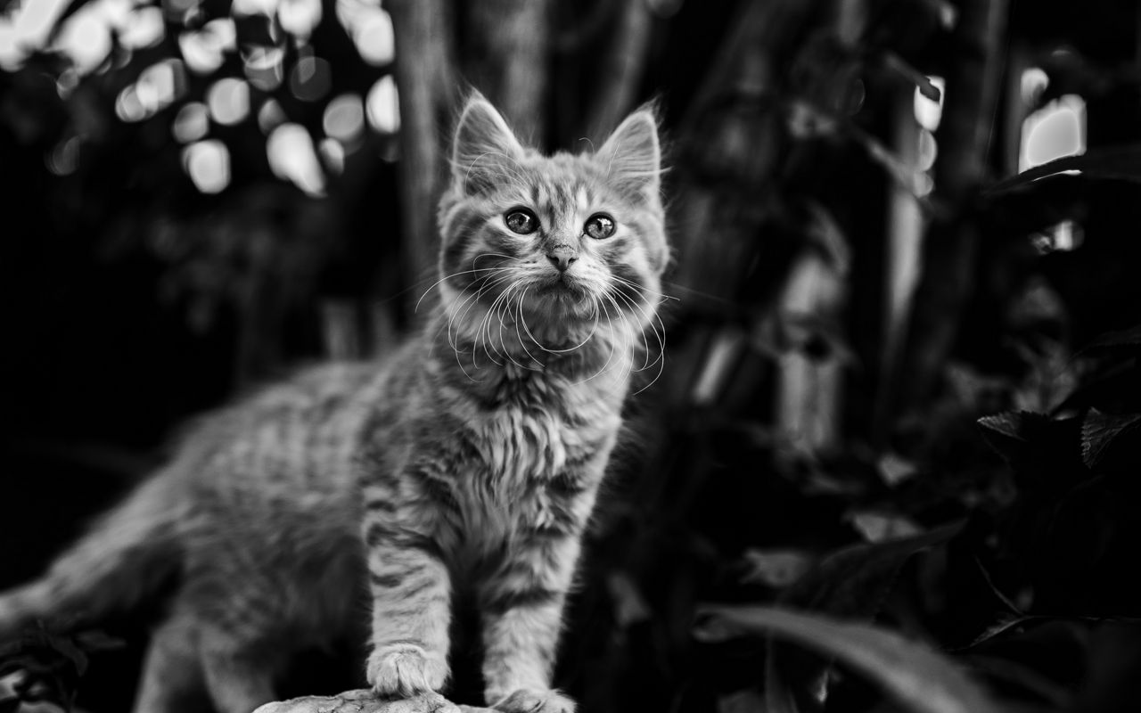 Download 1280x800 kitten, cat, pet, animal, bw wallpaper, background widescreen 16:10