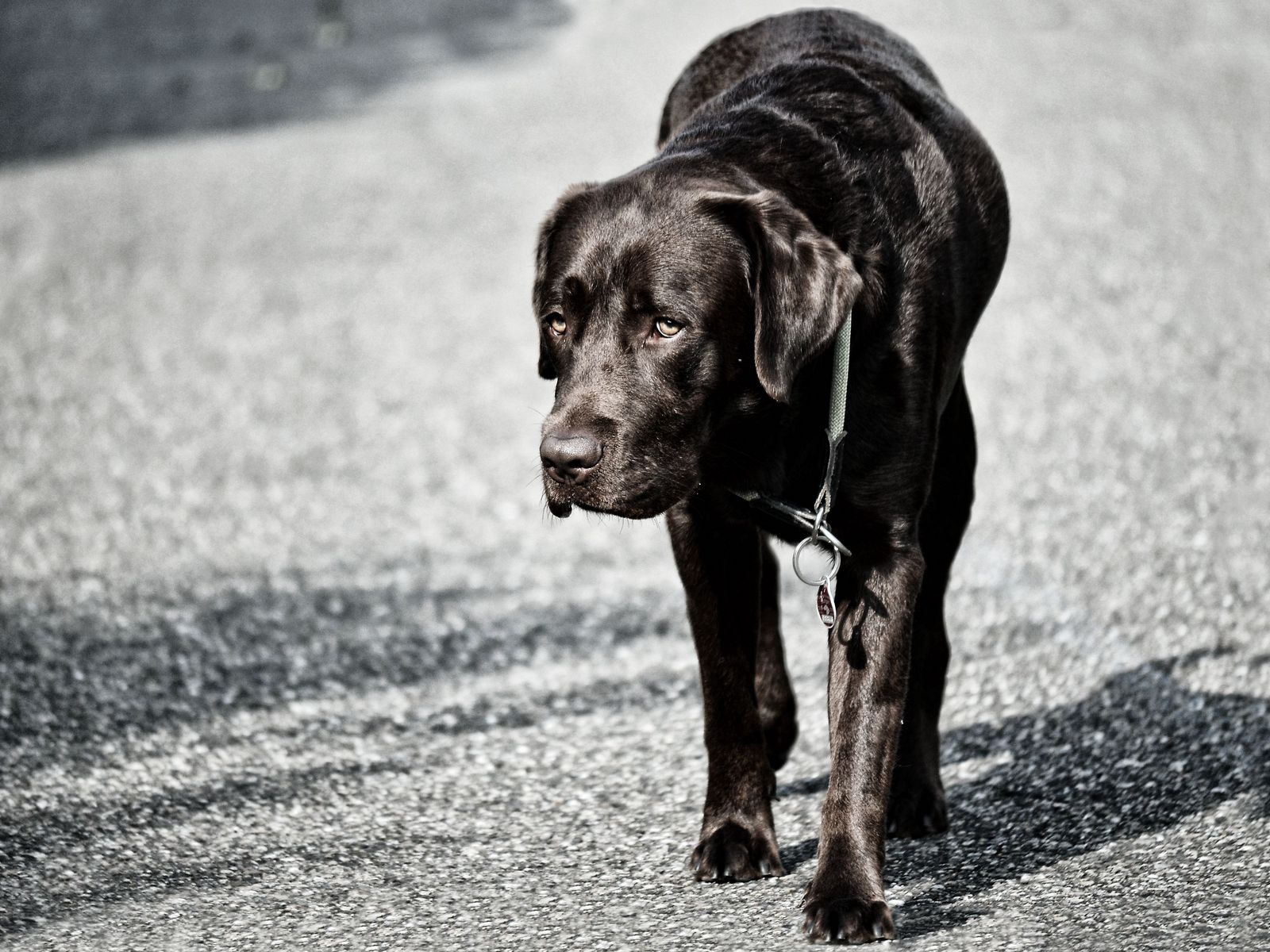 Download 1600x1200 labrador, dog, walk, black wallpaper, background standard 4:3
