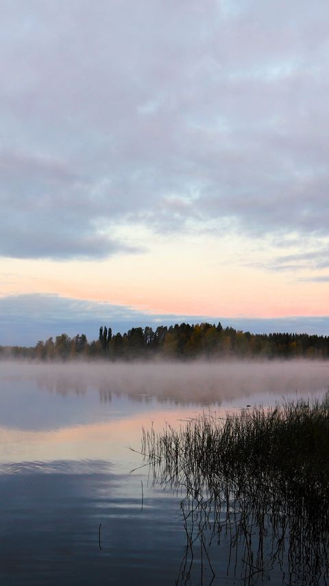 Download 480x854 lake, fog, trees, dawn, landscape wallpaper, background nokia lumia 630, sony ericsson xperia
