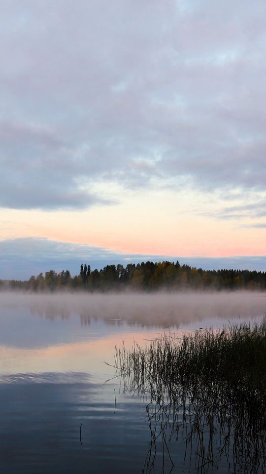 Download 540x960 lake, fog, trees, dawn, landscape wallpaper, background samsung galaxy s4 mini, microsoft lumia 535, philips xenium, lg l90, htc sensation