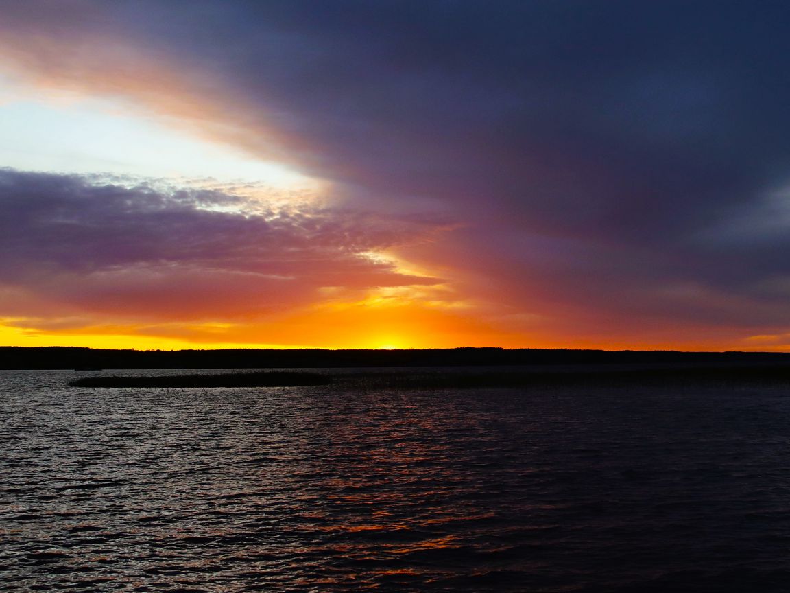 Download 1152x864 lake, sunset, water, sun, sky, nature, landscape, evening wallpaper, background standard 4:3