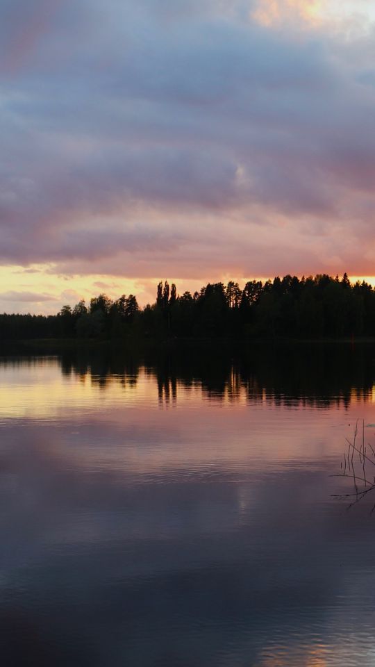 Download 540x960 lake, trees, forest, clouds, sky, sunset, landscape, dark wallpaper, background samsung galaxy s4 mini, microsoft lumia 535, philips xenium, lg l90, htc sensation