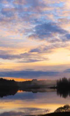 Download 240x400 lake, trees, forest, clouds, sunset, reflection, nature wallpaper, background nokia asha 311, samsung galaxy 580, omnia, lg kp500