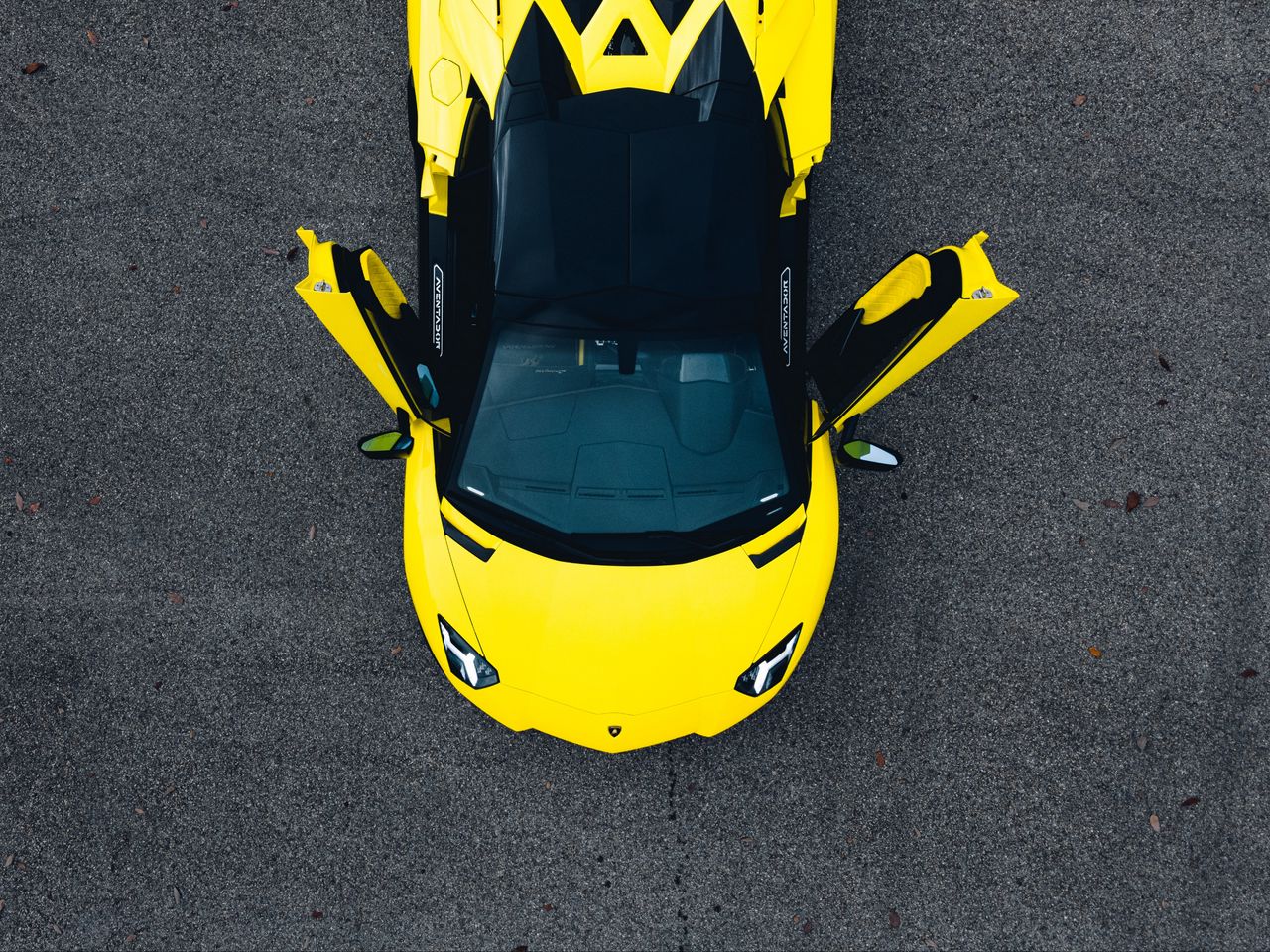 Download 1280x960 lamborghini aventador, lamborghini, car, sports car, yellow, aerial view wallpaper, background standard 4:3