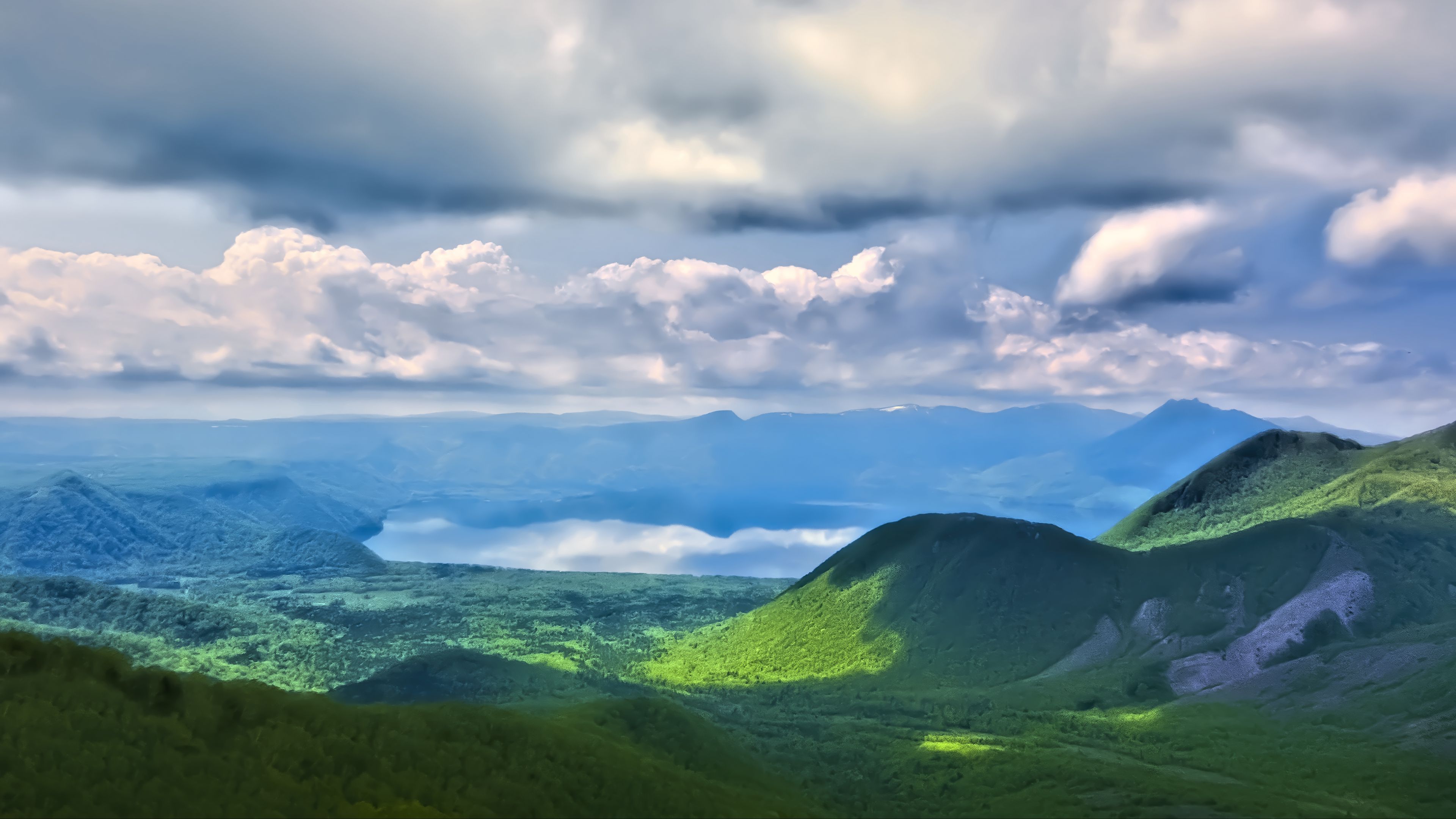 Download 3840x2160 landscape, hills, mountains, clouds wallpaper, background 4k uhd 16:9