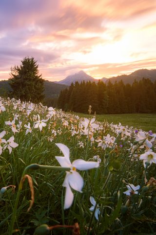 Download 320x480 lawn, flowers, mountains, trees, landscape wallpaper, background samsung galaxy ace gt-s5830, sony xperia e, miro, htc wildfire s, c, lg optimus