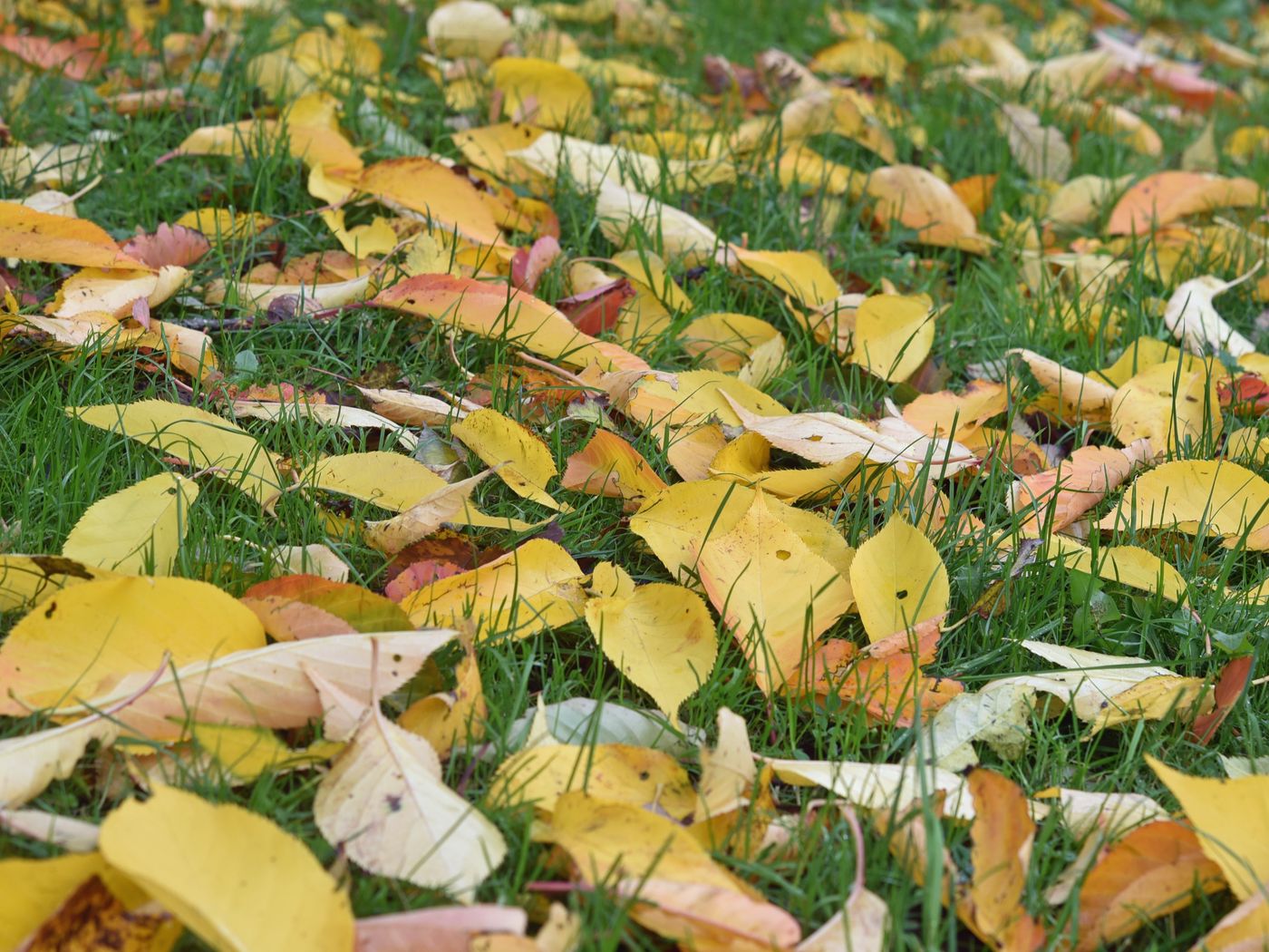 Download 1400x1050 leaves, grass, autumn, yellow wallpaper, background standard 4:3