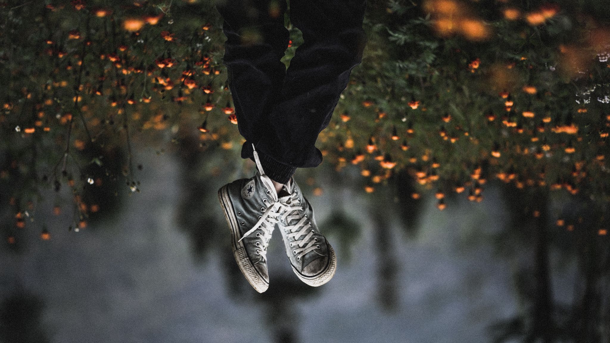 Download 2048x1152 legs, sneakers, field, flowers, blur wallpaper, background ultrawide monitor
