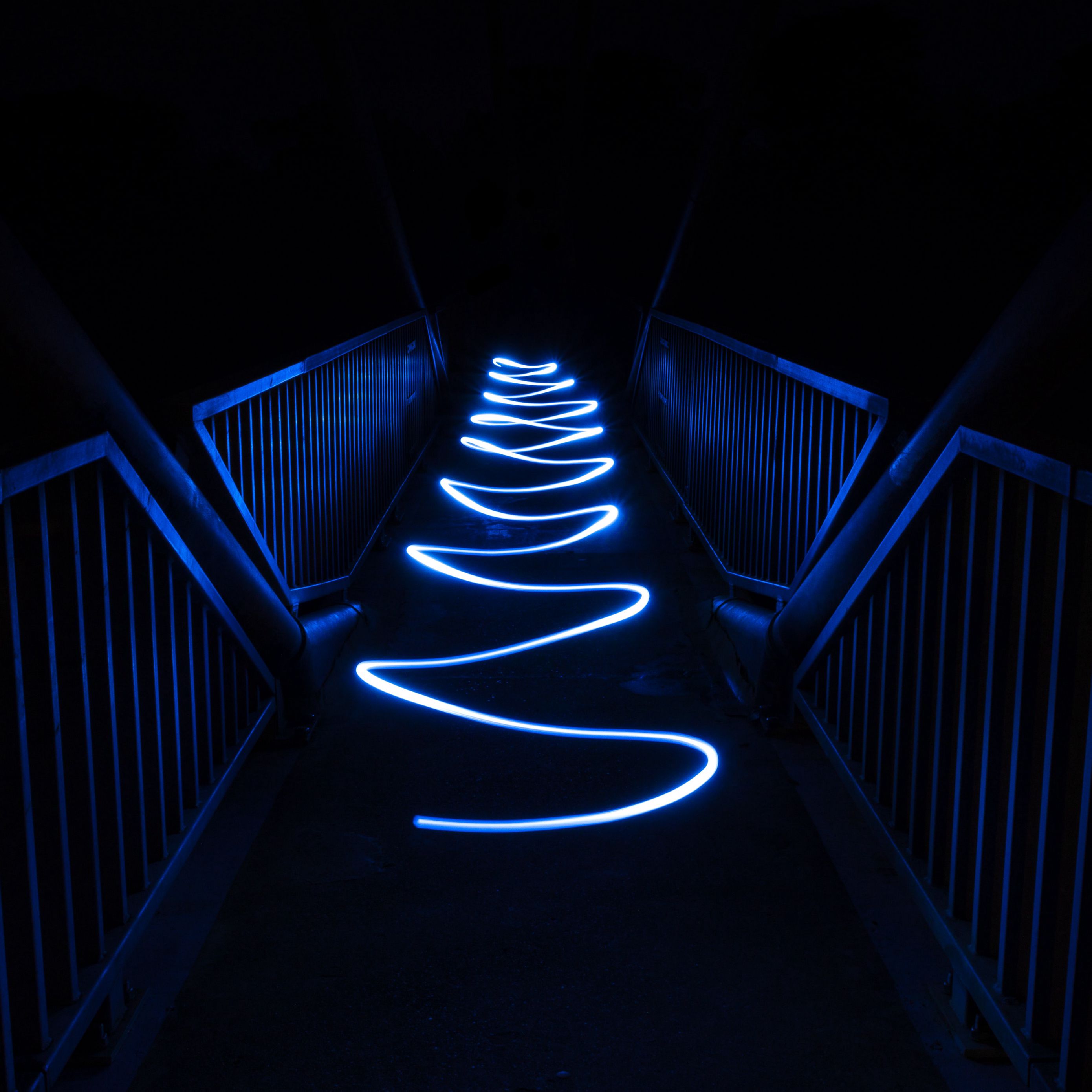 Download 2780x2780 line, neon, freezelight, glow, dark, winding wallpaper, background ipad air, ipad air 2, ipad 3, ipad 4, ipad mini 2, ipad mini 3, ipad mini 4, ipad pro 9.7" for parallax