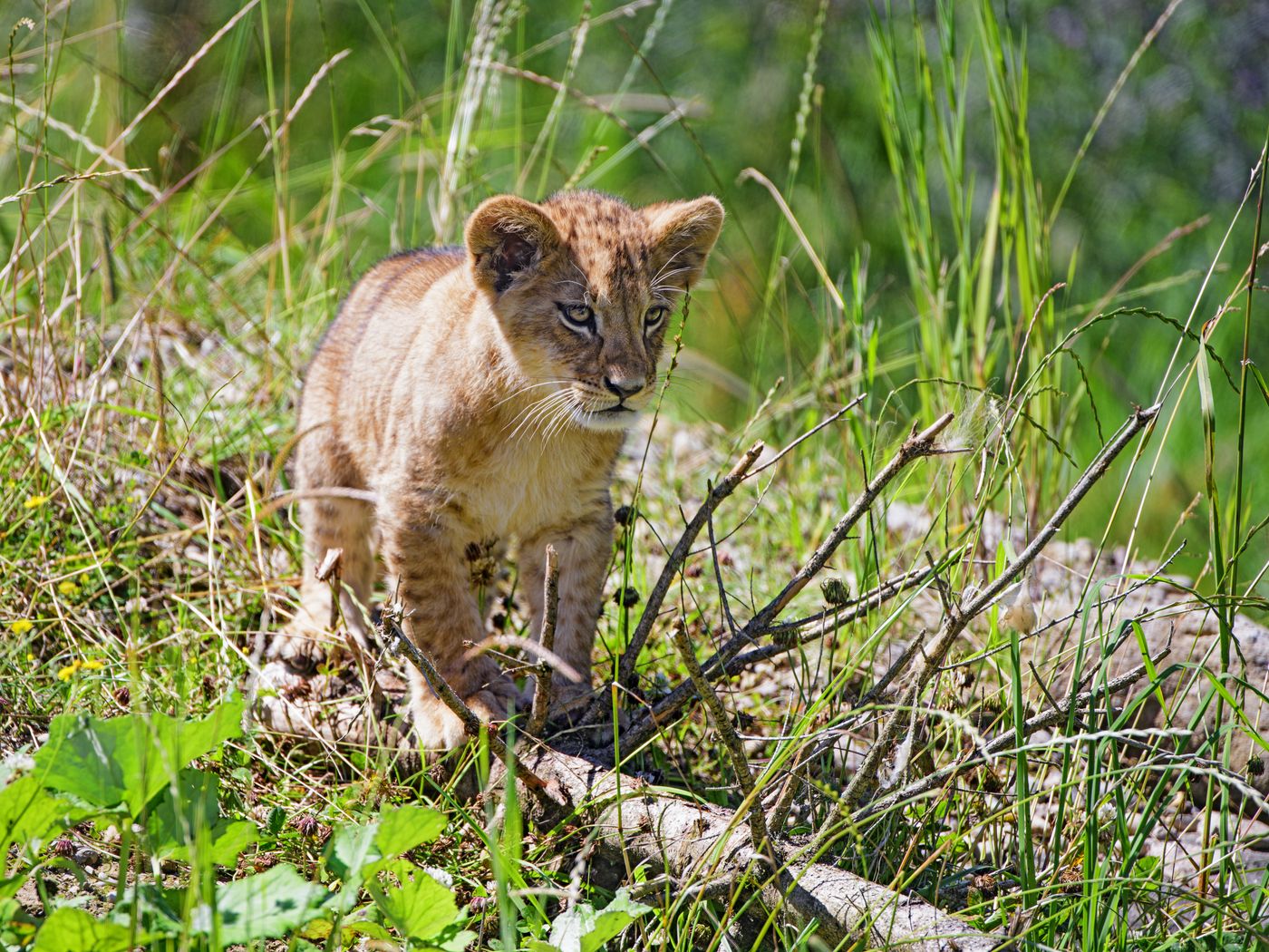 Download 1400x1050 lion, cub, glance, grass wallpaper, background standard 4:3