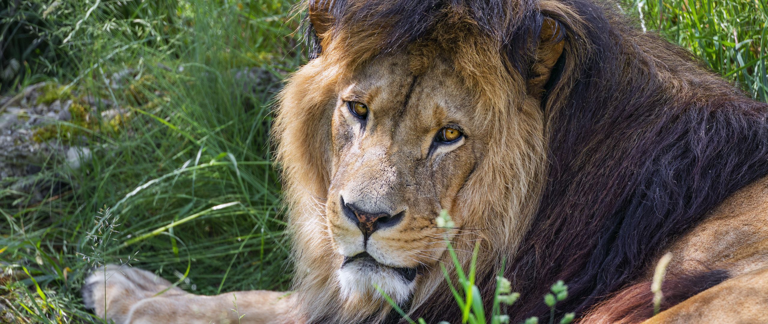 Download 2560x1080 lion, predator, glance, animal, fur wallpaper, background dual wide 1080p