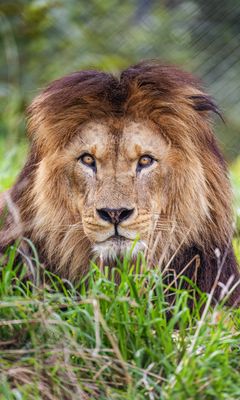 Download 240x400 lion, predator, grass, glance, animal wallpaper, background nokia asha 311, samsung galaxy 580, omnia, lg kp500